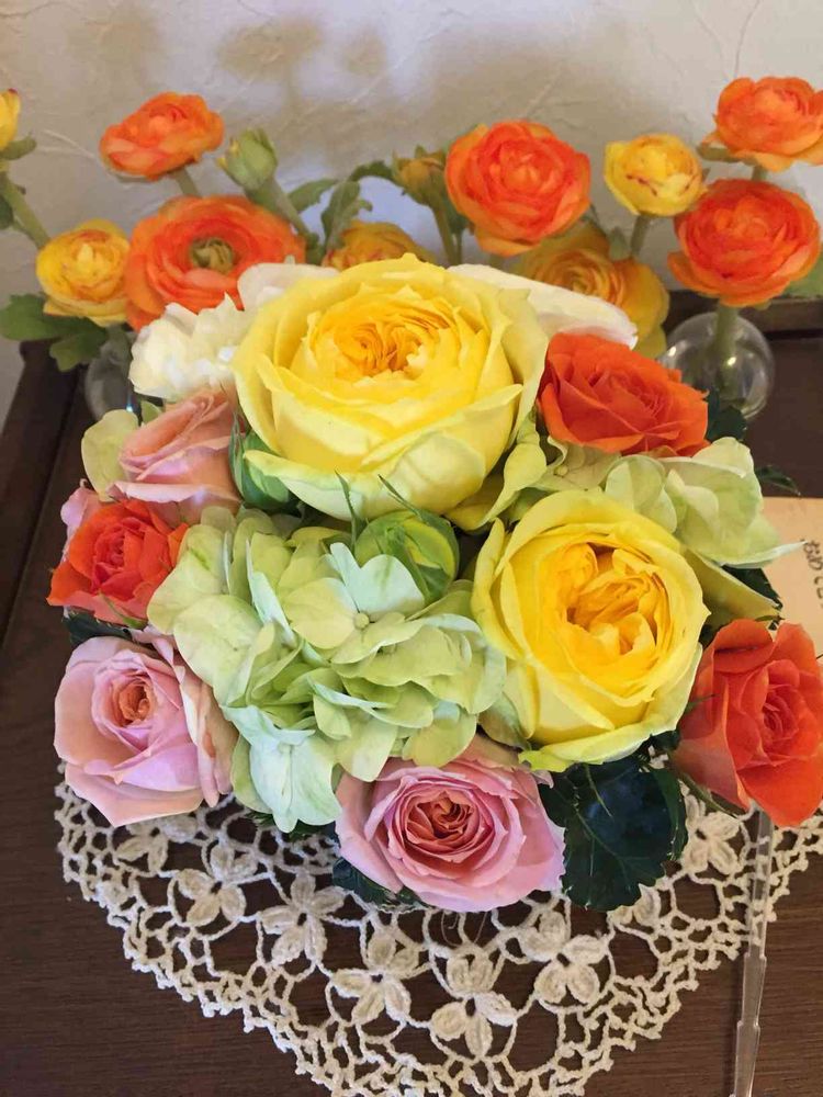 お祝いの席のお花をいただいて来ました❤️私の場合黄色のお花って春のイメージ。