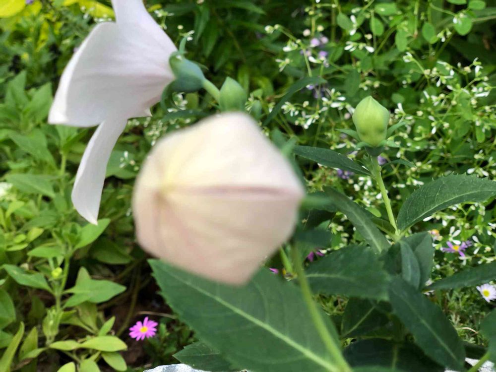 昨日の夕方キキョウが開く寸前(ピントが合わなかった😅)