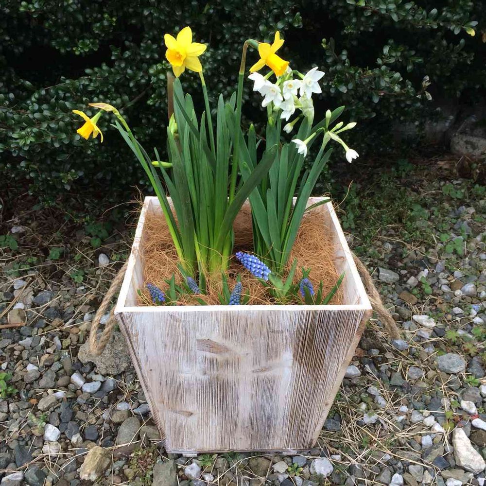 なんかね、最初は先生はバスケット型のプランターにしようかと考えていたらしいんだけど、ある生徒さんから、バスケットは水やりがやりにくいって意見が出たらしく、急遽木製プランターになったという経緯を帰り際の私に話してきたのよ💦