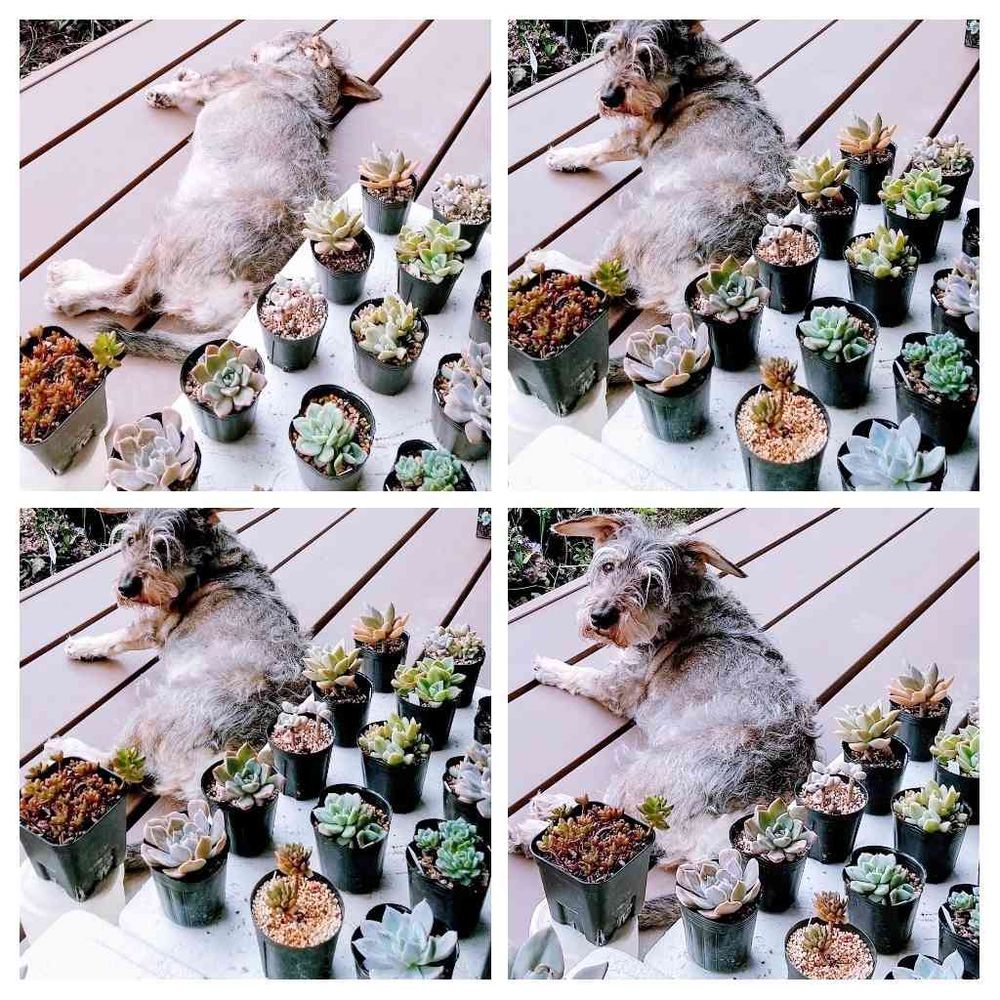 わ〜🤗ママさんの大事な多肉ちゃんを守ってますねυ´• ﻌ •`υ ワン