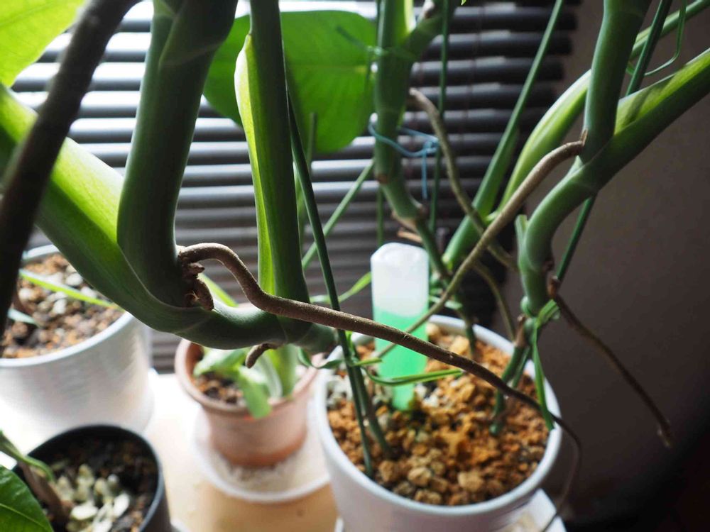ちびっ子モンステラの気根がのびのび〜っとのび放題な状態な今日この頃です😂😂