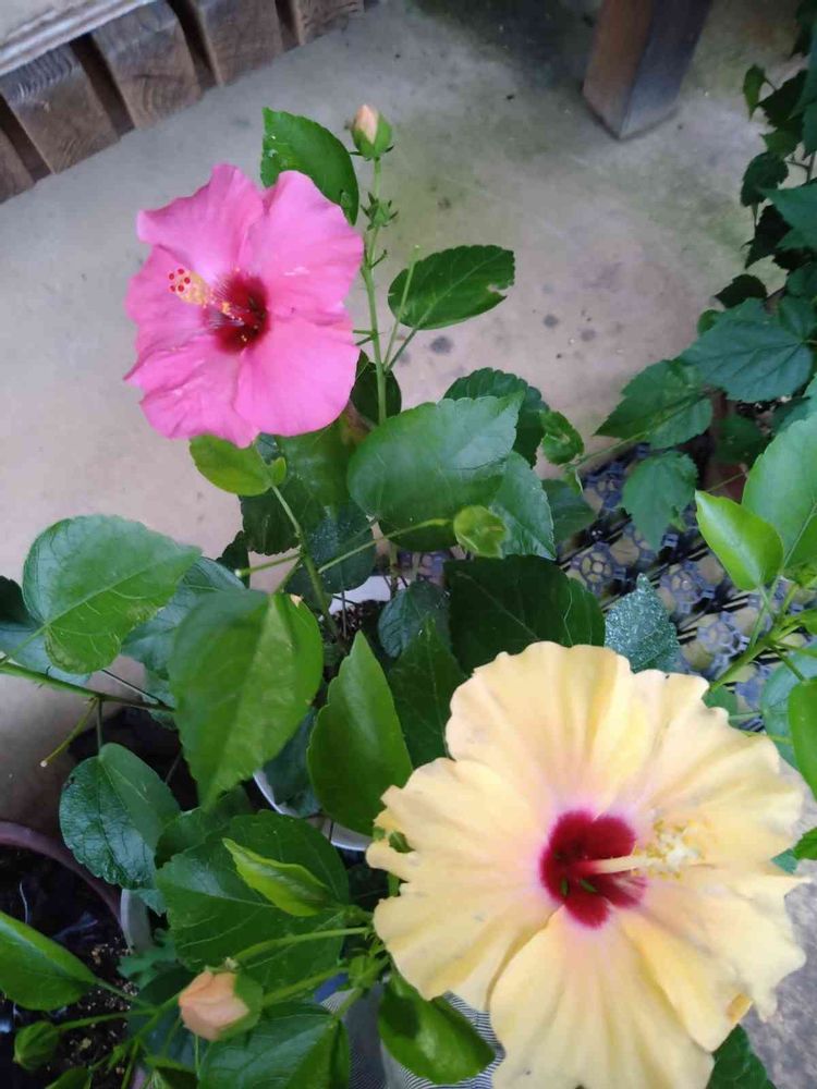 黄色いハイビスカスの中にピンクの花が咲きました不思議です💮🌻🏵️