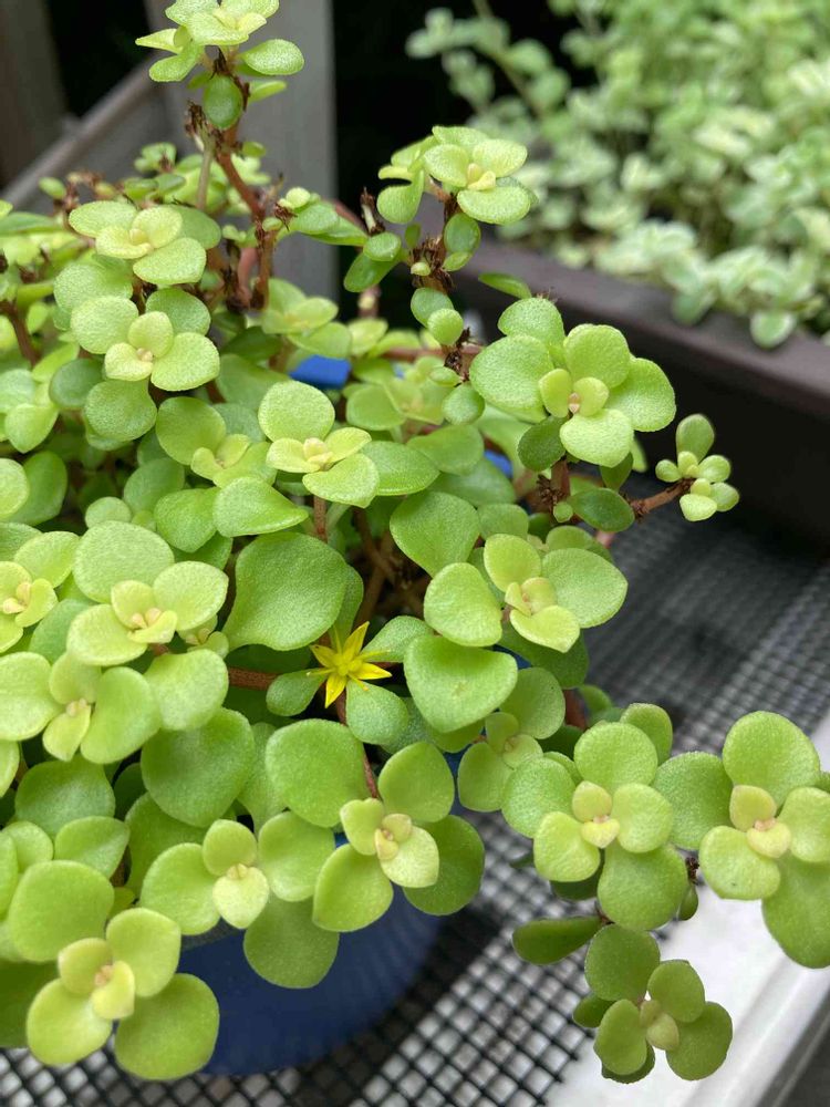 葉っぱ増えたなー、ふわふわして可愛いなーと眺めてたら、黄色い花が一つ。