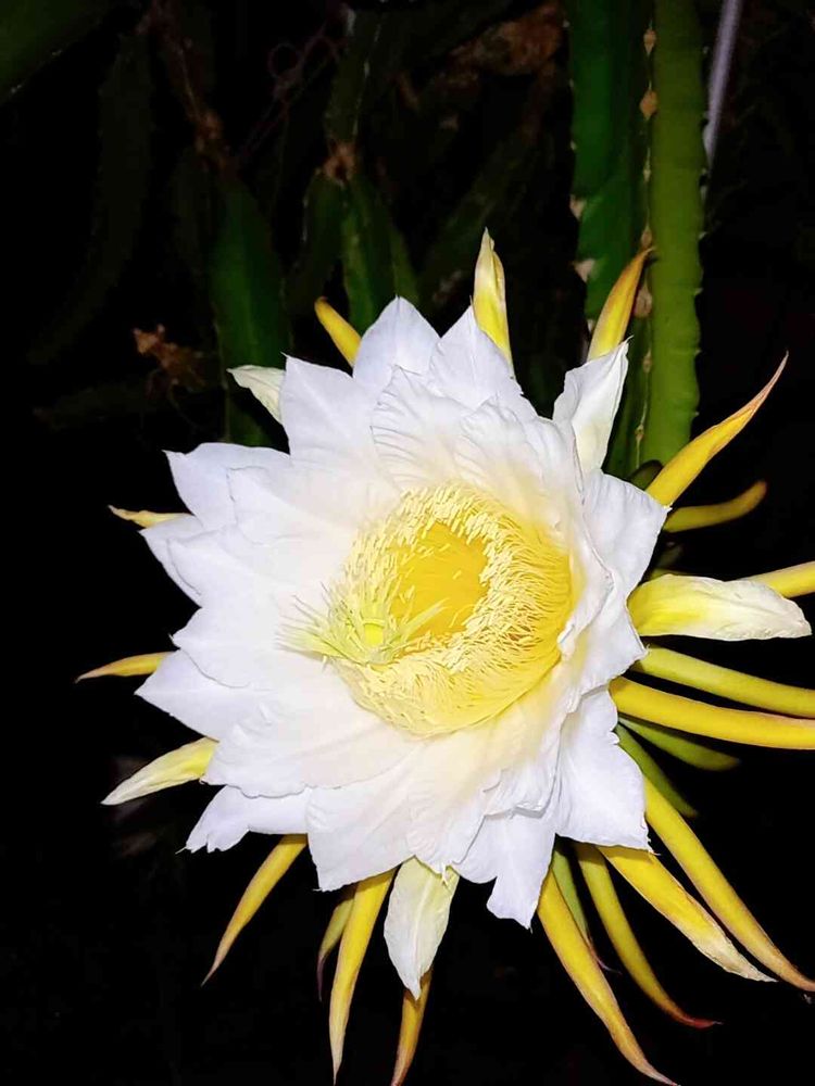 ドラゴンフルーツの花って 夜しか 見れないんですよね😅