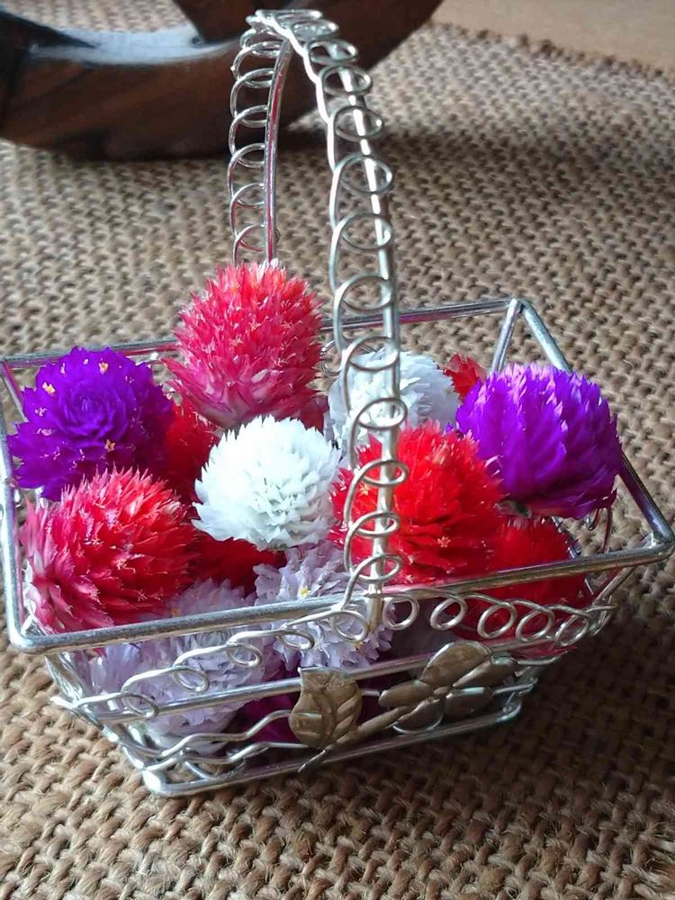 百均のカゴに千日紅いれてみました🙌