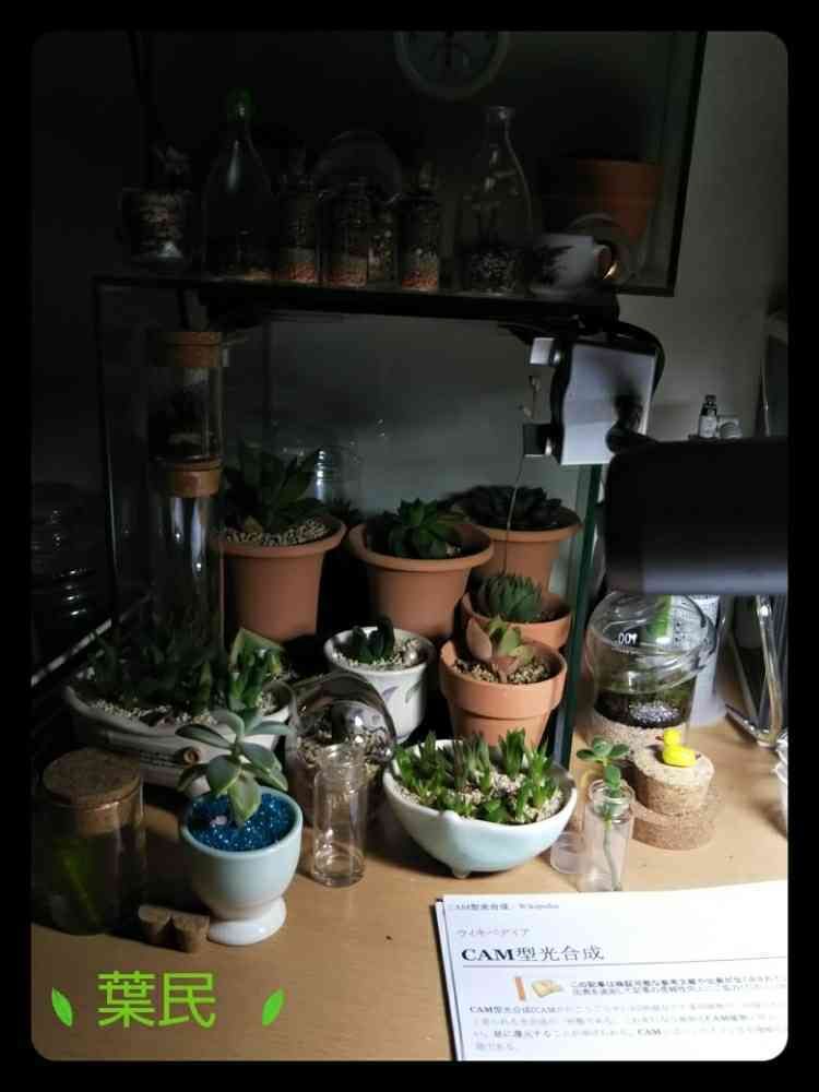 多肉とかサボは、CAM型植物でね。日中は気孔を開けると、乾燥するから閉じてるんだよ。夜は気孔を開けて、二酸化炭素を取り込むわけ。