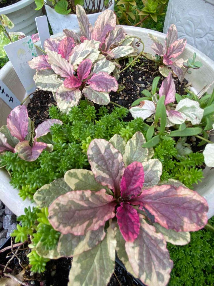 瀕死だった斑入りのアジュガがお花のように咲いています🌸🍀🌸🍀