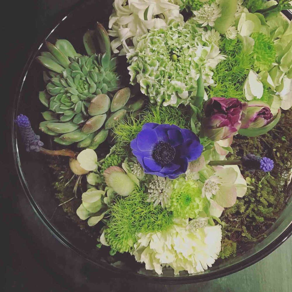 ガラスベースのアレンジメント。