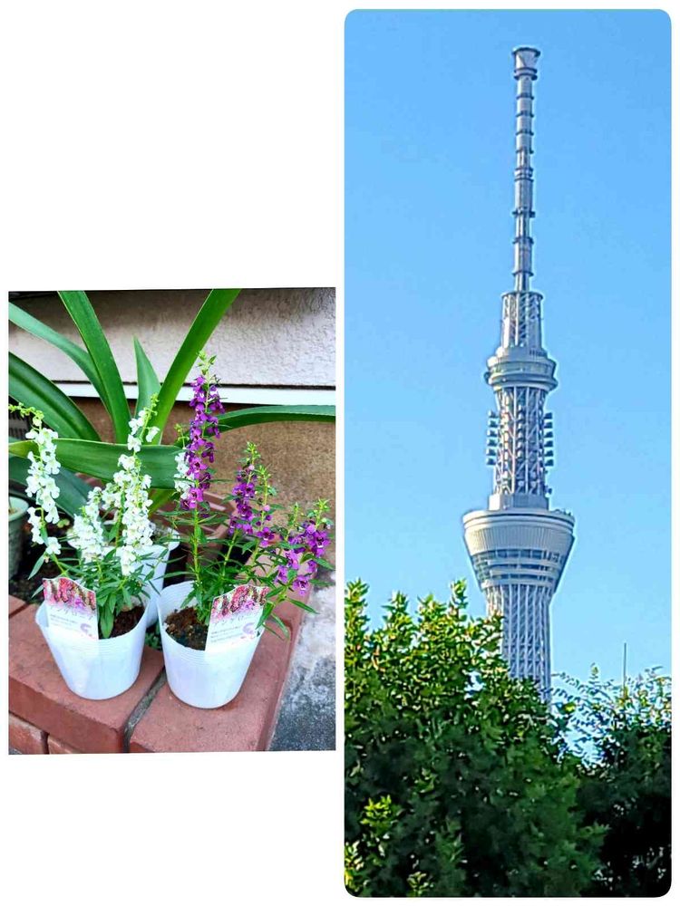 左:アンゲロニア→オオバコ科の多年草、朝読んだ趣味の園芸9月号に載っていたお花に逢えました🎵✨