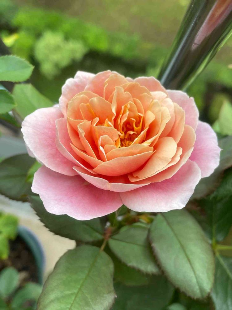 昨日蕾だったディスタントドラムスが朝開いていました。🌹