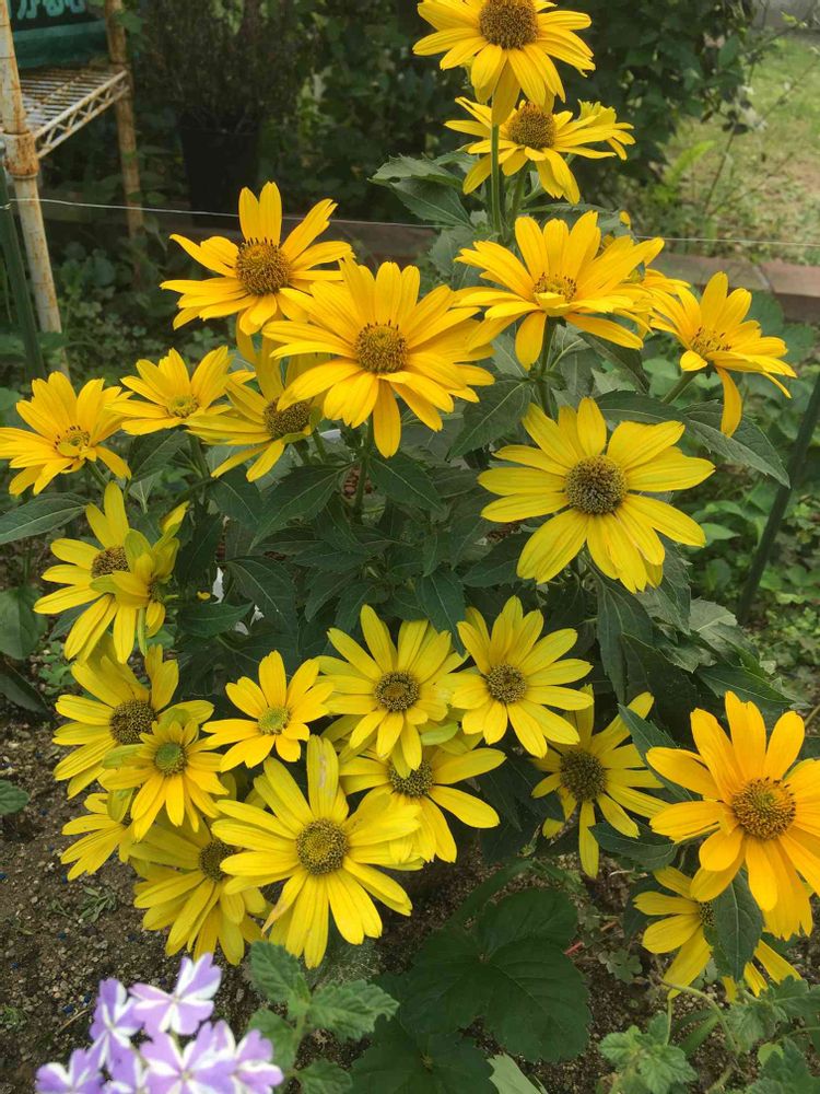 夏の暑さも異例の長雨もこの子だけ元気😊PWのヒメヒマワリです。