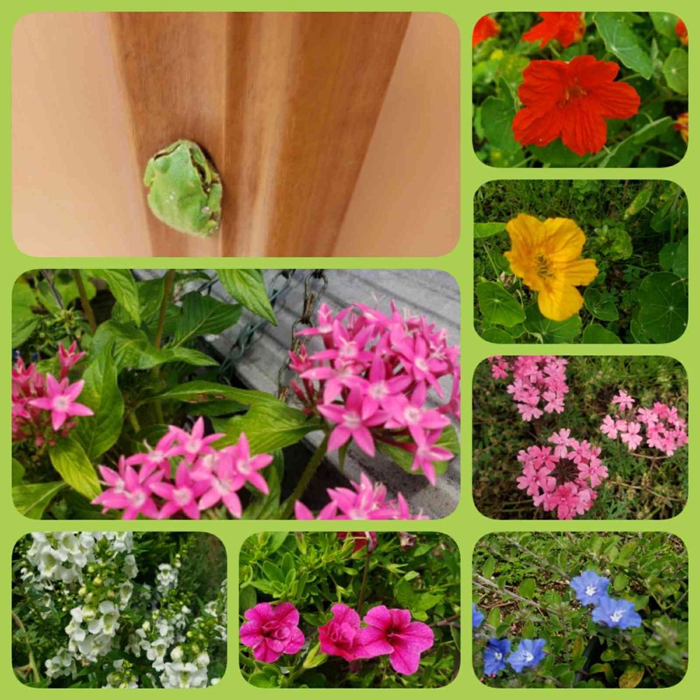 お庭では お花も気持ちの良さそう。🐸ちゃんもいっぱいお庭で跳ねてます。