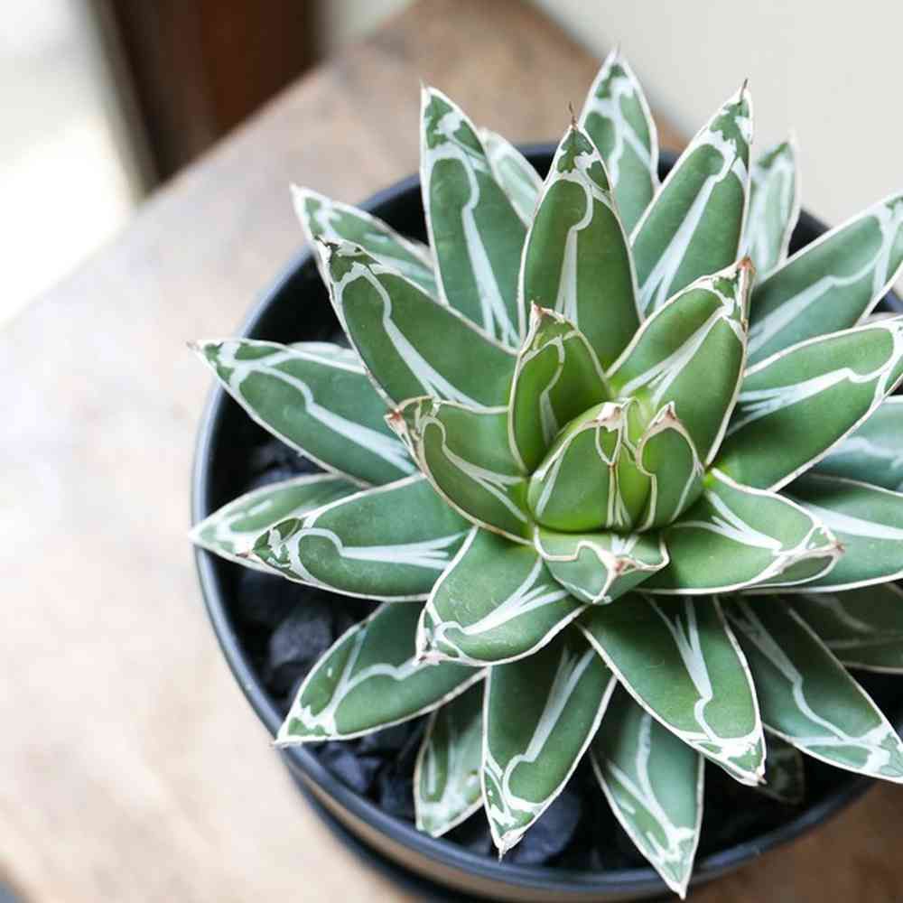 アガベ・笹の雪。プロダクトデザインを思わせるような無駄の無い葉姿です。