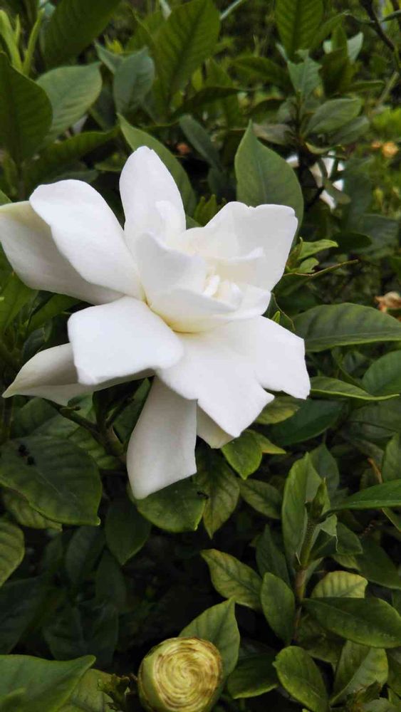 近くの街路樹の下に、クチナシの花が植わってまして、ウオーキングの時に楽しんでいました🎵