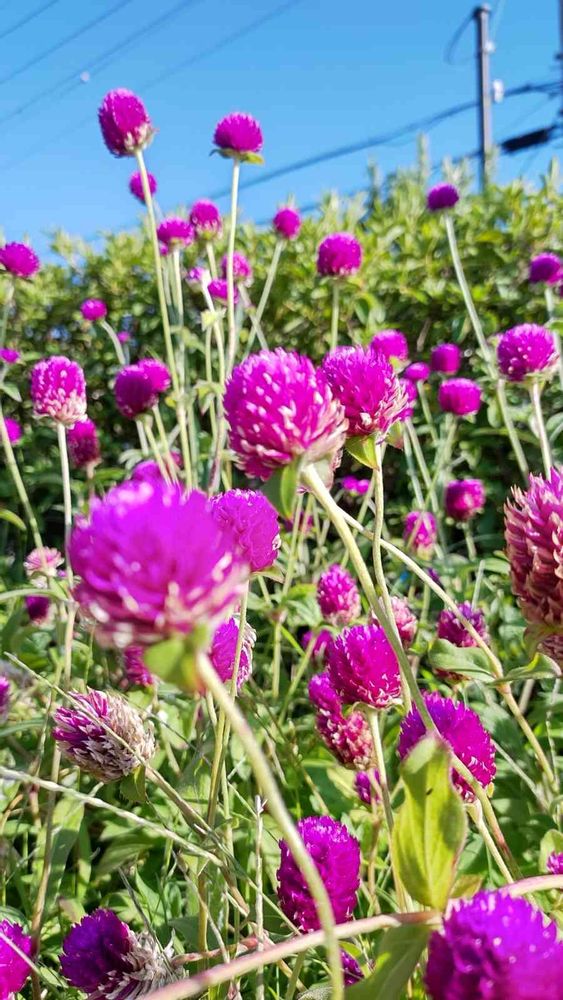通勤途中にある川沿いの花壇に 千日紅が綺麗に咲いています🤗🎶