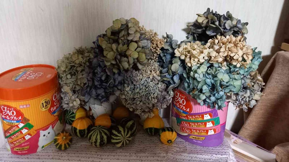 おまけでわが子の猫のちゅーるのケースで飾って見ました😅