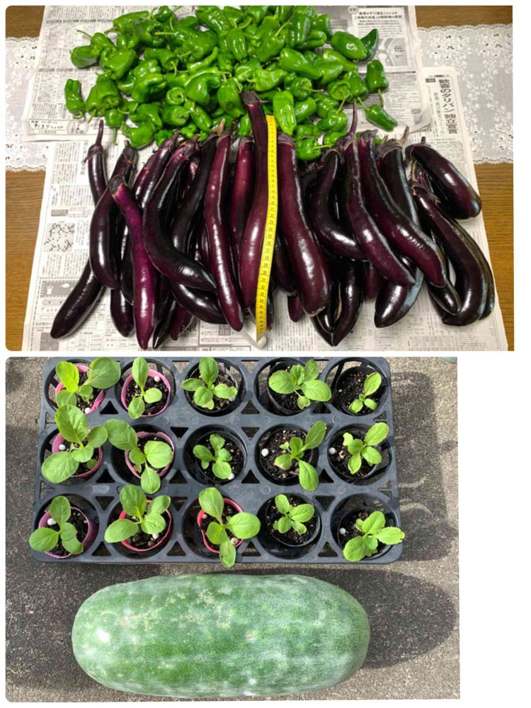 ご近所さんから食べて下さいと、🫑100個長茄子🍆40本頂きました😳😳