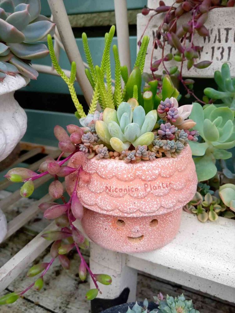 めっちゃ可愛い(੭ु´͈ ᐜ `͈)੭ु鉢と寄せ植え、合ってますね~︎💕︎💕