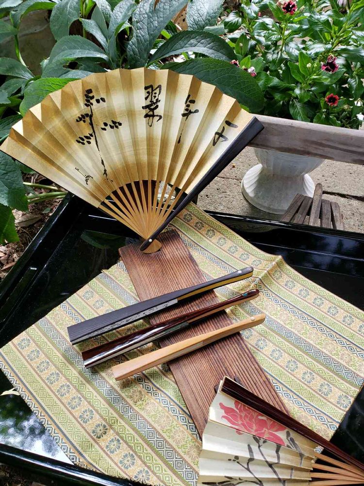 一番手前の扇子は半世紀前の叔母の物。要が緩くなり時を感じます。コメントm(__)m