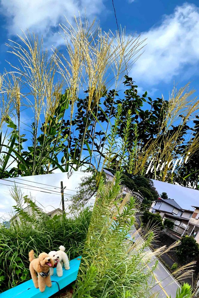 ヒロッピーさんのお出かけ先,ススキと青空,犬とお散歩の風景の投稿画像