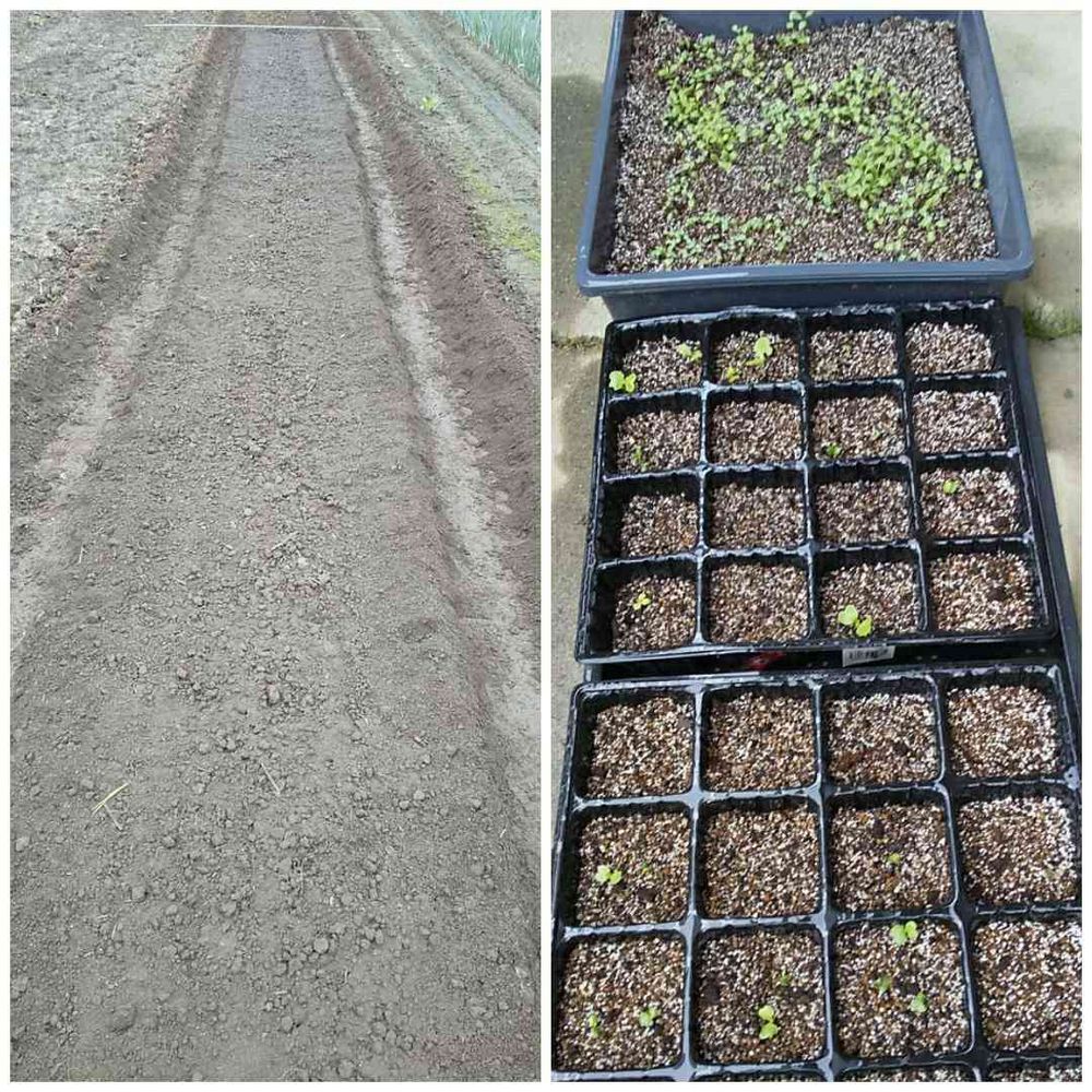 右は8/27に播いた白菜とレタスです。白菜の発芽が疎らですね😅