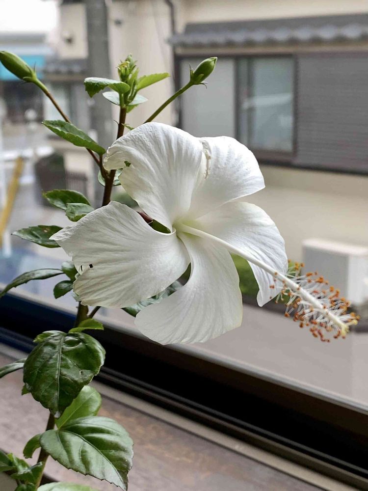 ウワーこんな白いハイビスカス🌺咲いたんだね🌺🌿