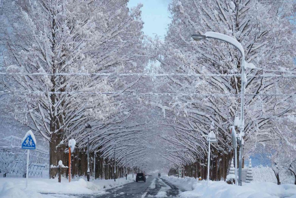 なかなか雪のメタセコイヤ並木に出会えなくて😎