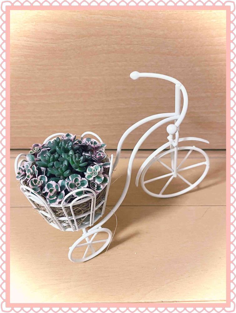 可愛いね!(^o^)/ 私もこの自転車持ってます😃が あんまり小さいから、寄せ植えするのが、下手なので 小さい鉢を乗せています!(* ´ ▽ ` *)ノ😅😂