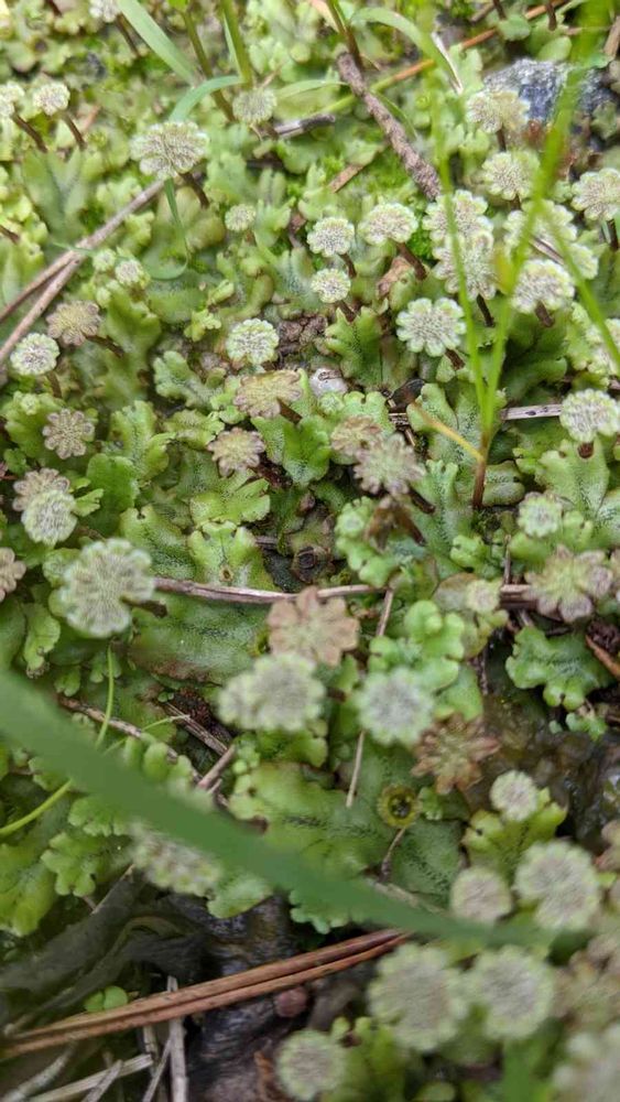 ゼニゴケの雄株?雌株と形が違うそうです🌱