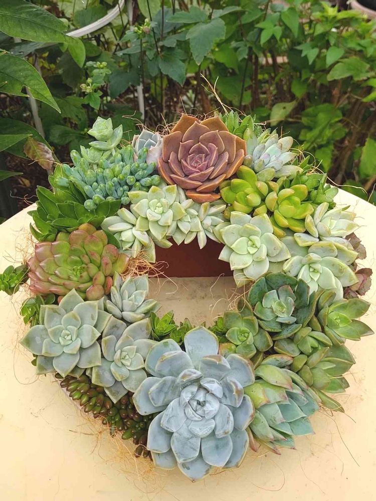 少し前に作ったリース型(大)の寄せ植え💚