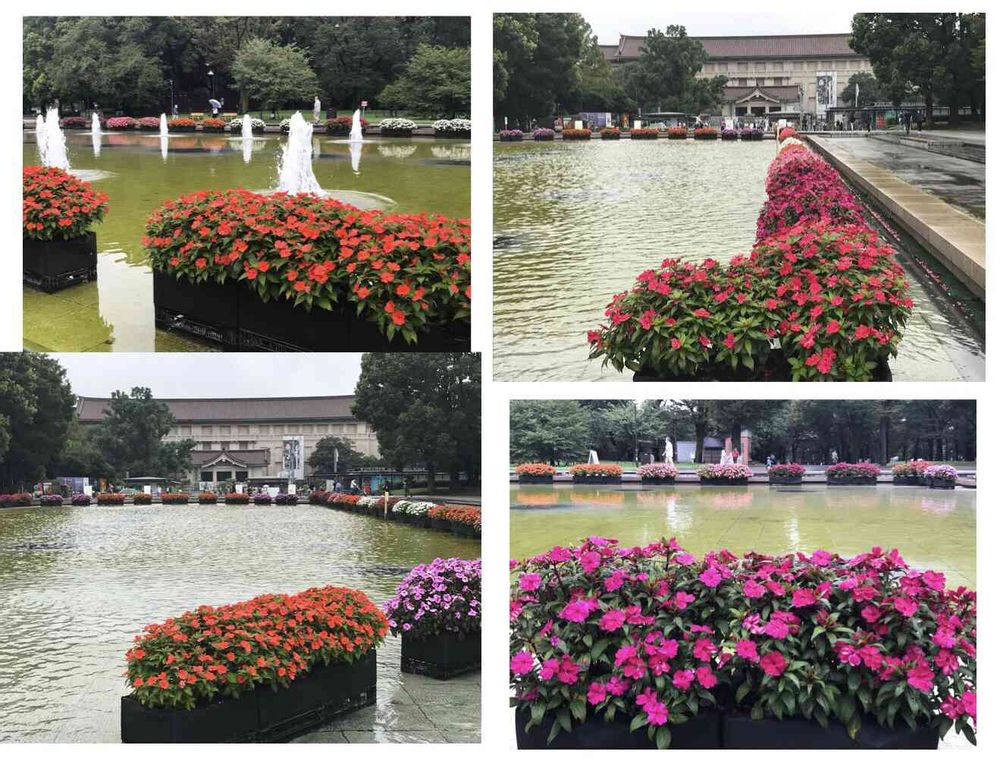 トーハクの前には噴水⛲️が有り、サンパチェンスが見事に咲いている。