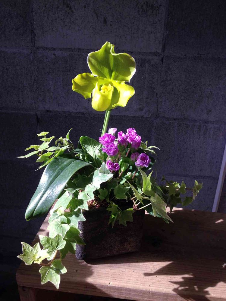 室内用のワンユニットギャザリング。ジュリアンは室内もイケるって聞いたのでどれくらい持つのか試しに。室内で切り花だと一か月持てば良いとこだから、根付きで一か月いけたら良いやん♪と思う。