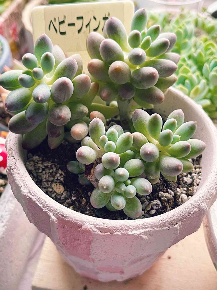 ベビーフィンガーは私も持っていますが、これから寒くなって来るとピンク色に染まってきますので、この鉢にピッタリですね😉