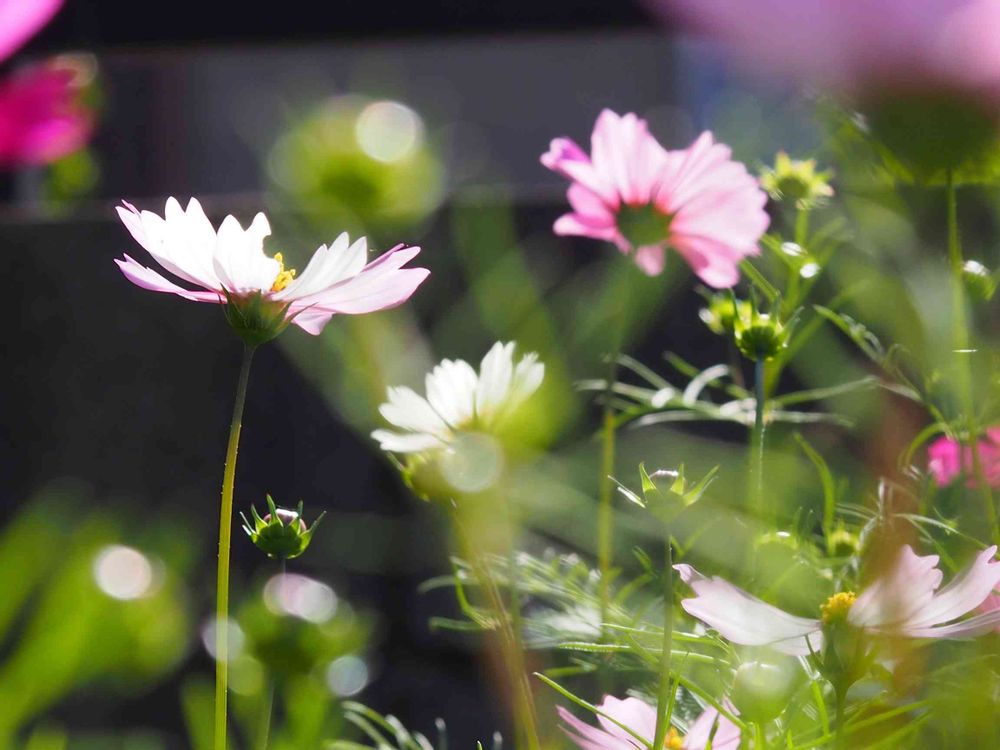 優しい華やぎを見せて、風に揺れて、楽しそうな雰囲気を見せる秋桜