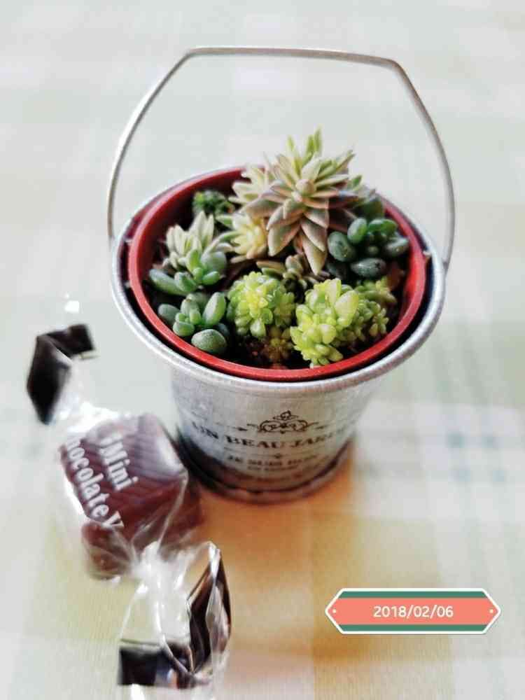あらっ❣️かわいい寄せ植えと思ったらチョコが置いてあってビックリ‼️😳