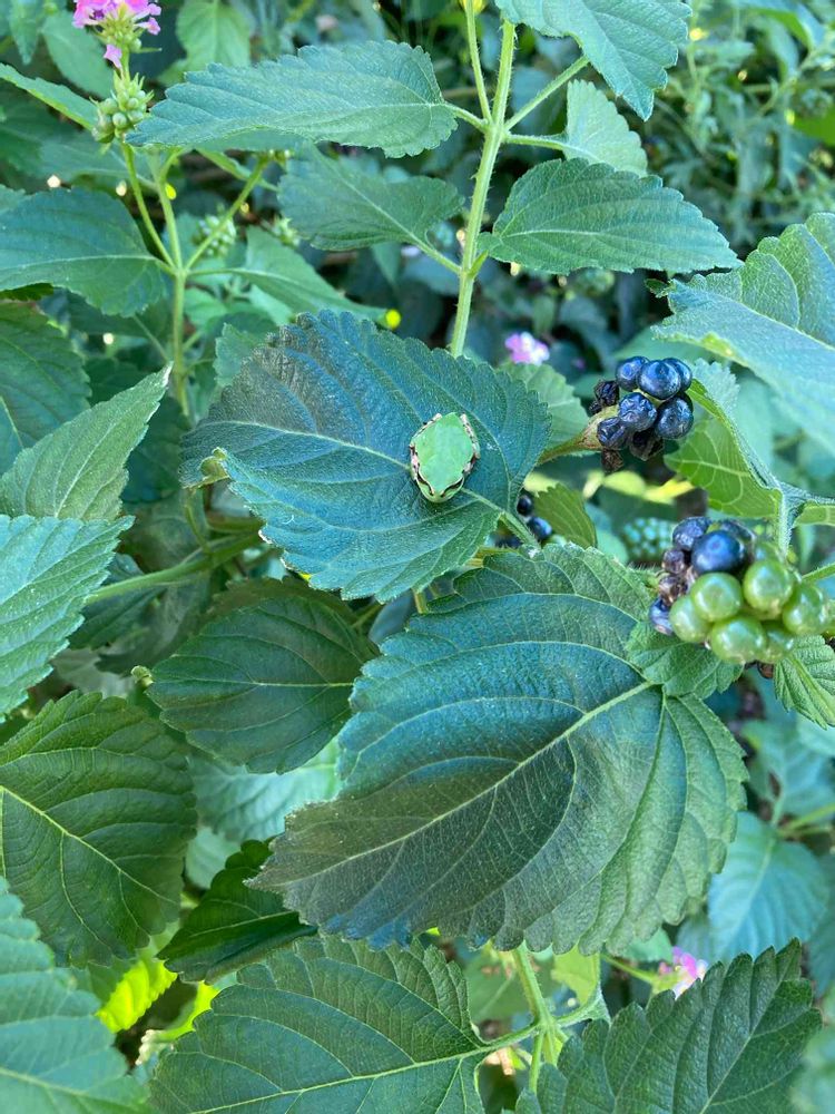 ありゃ?ランタナ❀︎さんの🍃にかわいい子がひと休みしてる。今日も暑かったもんね、お疲れさま( ˶˙º̬˙˶ )୨⚑︎"