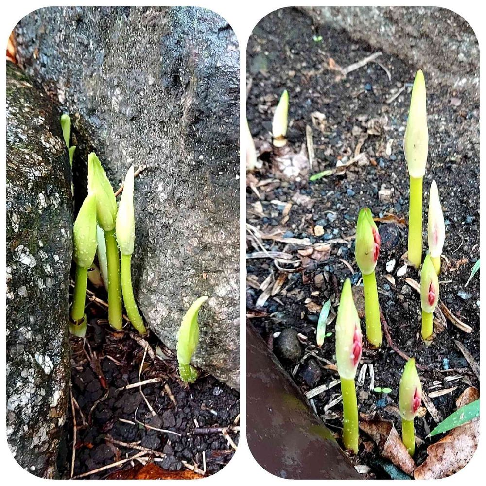 昨日までは何もなかったのに、今朝、いつもの場所にニョキニョキと出てきてました😄