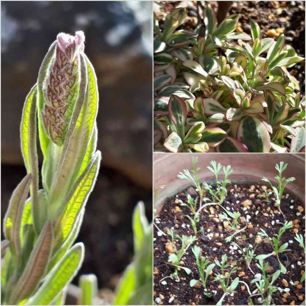 ラベンダーの花芽がうっすら色をつけて伸びてきました。