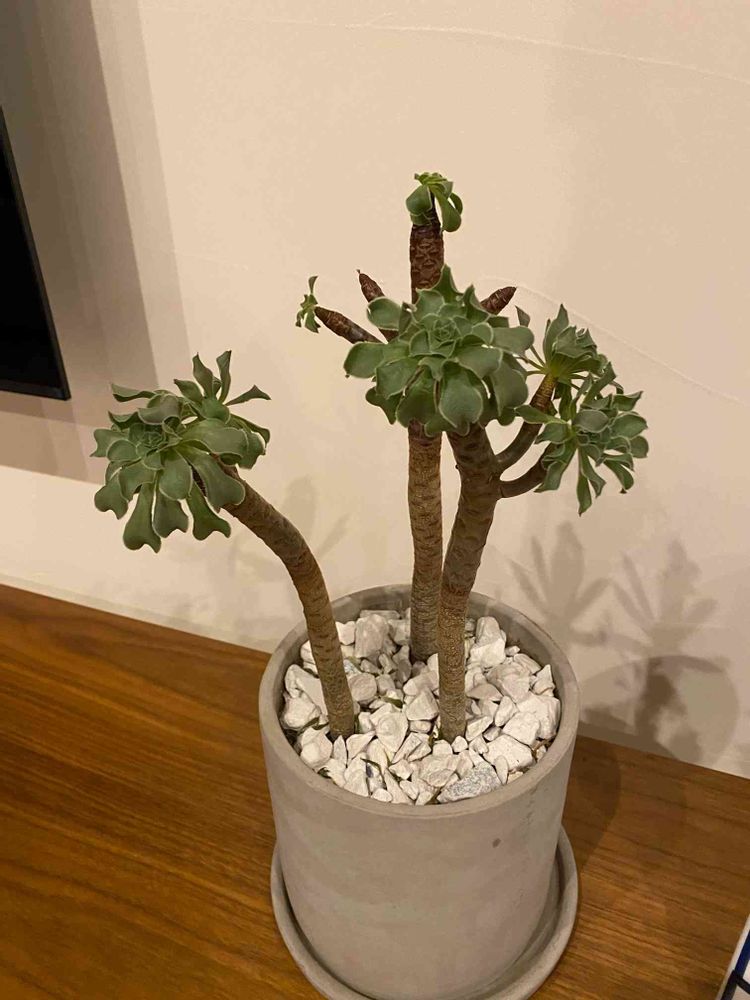 たぶんアオエニユムと思います、いままでは休眠期につき仕方ないですが、日照不足です、これから成長期に入る為、屋外で管理してください、尚室内管理された株を急に外に出すと葉焼けをします徐々に日に慣らすといいです、夏でも軽い水やりをしてください