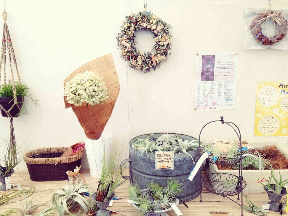 エアープランツ各種やドライ、リースなども置いてます〜。