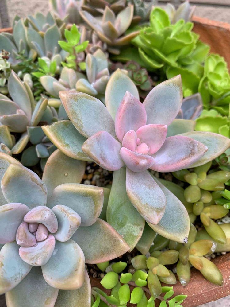 寄せ植えの桜牡丹がうっすらピンク色に紅葉してきました✨