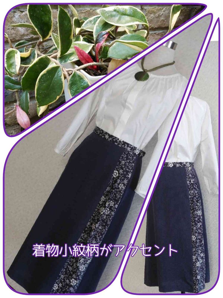 母の小紋柄の余り物があったので切り替えに仕用 サイズアウトで着用出来なかったスカートが新品同様になりました👘👗