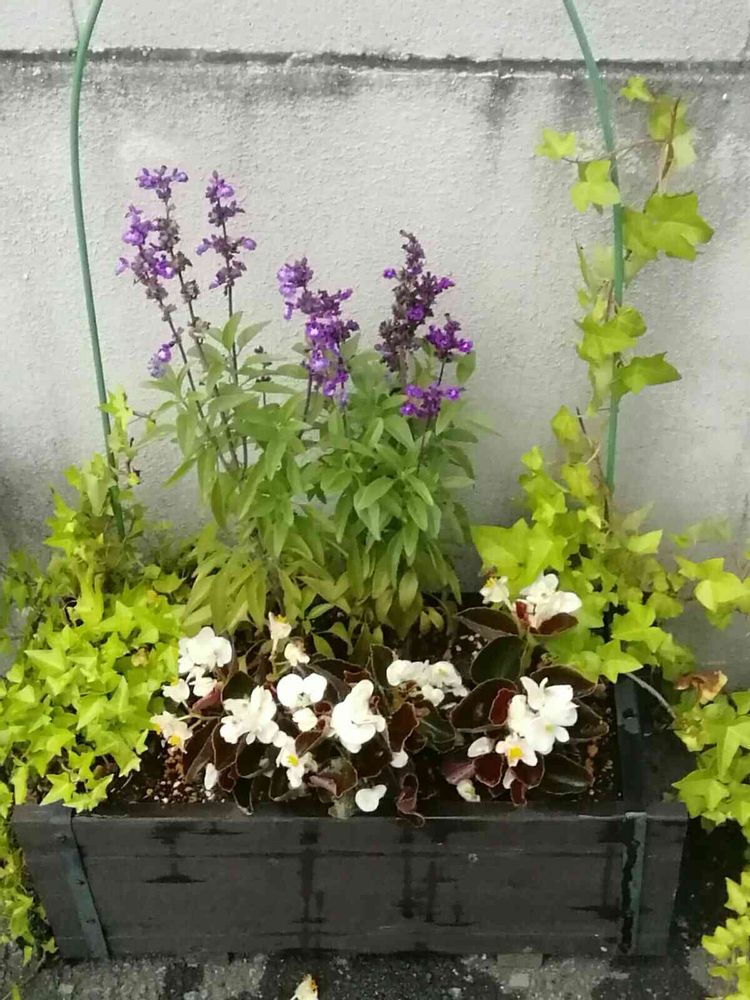 ブルーサルビアにアイビーの寄せ植えシックな感じで素敵ですね🎶家の花壇にもブルーサルビア植えています😊