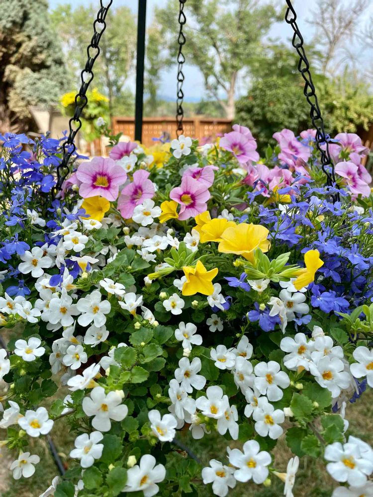 さん、毎日肥料入りの水まきをしてたのが良かったのかもしれませんね。 選んだ花も長続きする種類だったのかも。この夏一度大きな雹が突然降り出し、その中傘をさして☂️ハンギングをレスキューしたこともありました😊☔️