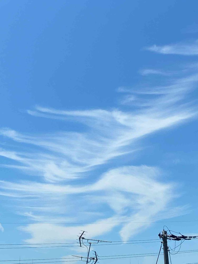 昨日は一日中 綺麗な雲が。スジ雲やね☁️