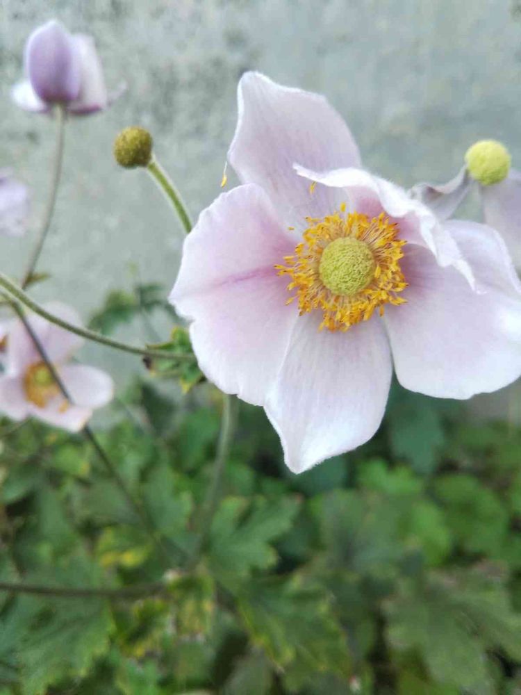 ここは山里( 100m先は山 山あるから山形県😅)午後になると日陰😞「秋明菊」 今撮影📷️閉じあんばいです🙇