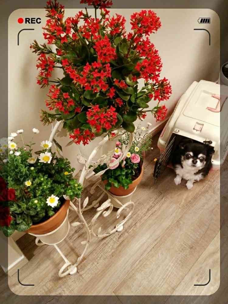 お花はどうでもいいから、早くご飯頂戴よ〜っと言わんばかりの🐶、いい子で待ってくれました👍