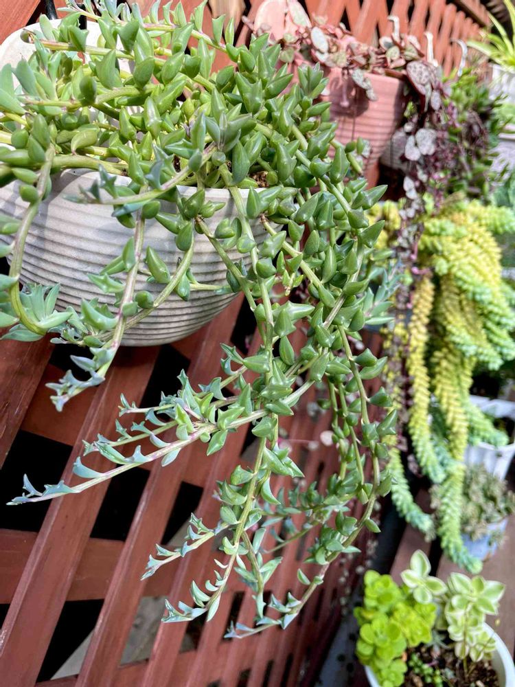 さん、こんにちは😊今日は、良い天気で暑かったですね😁ドルフィンネックレスさんは、お店で徒長しまくって、葉っぱが魚のエイ?みたいに開いてるの良く見かけます😥太りぎみの方がまだマシですね😆🎶