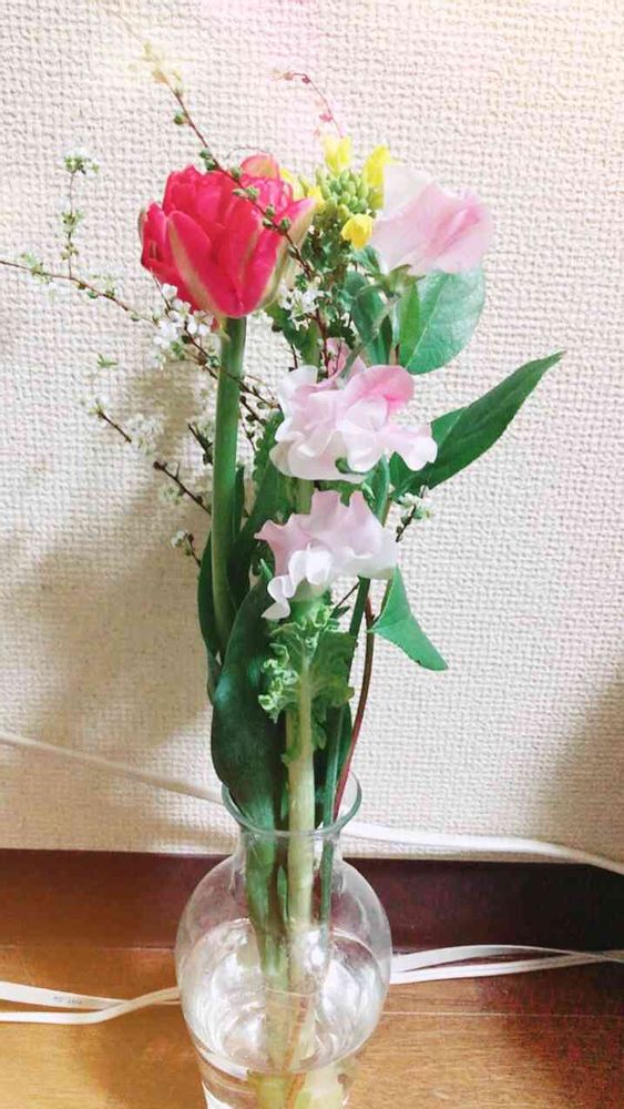 今日お店からお迎えしてきた春の花MIX🌷.*