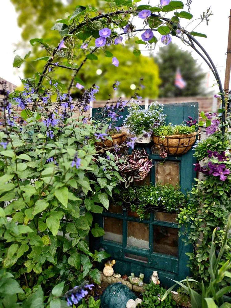 さて、左側のサルビアの剪定場所を間違えてしまい、とんでもなくデカくなってしまいました😅せっかく作ったどこでもドアが半分見えない😑